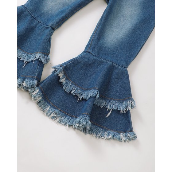 Cute and comfy baby girl 2 piece outfit with long sleeve top and bell-bottom jeans. Perfect for fall, winter, parties, playtime, and everyday wear.