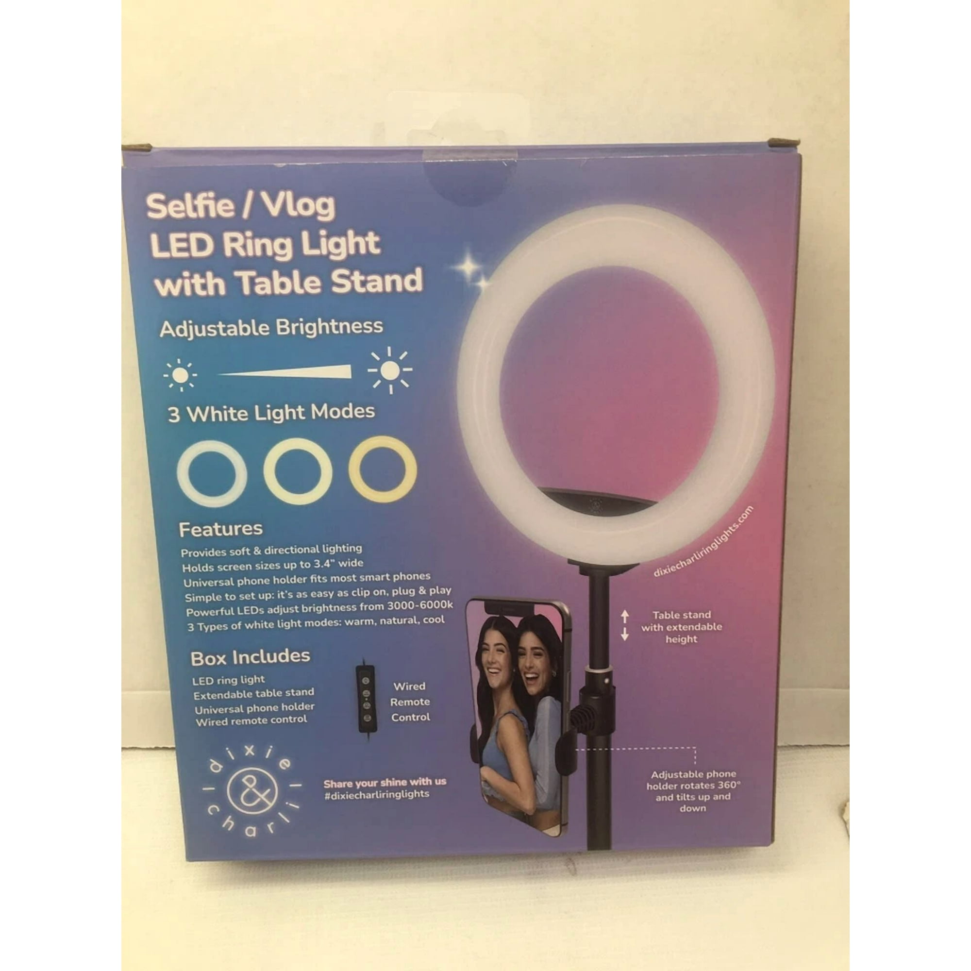 RHEA- Dixie & Charli Selfie / Vlog Led Ring Light W Table Stand & Wired Remote Nib