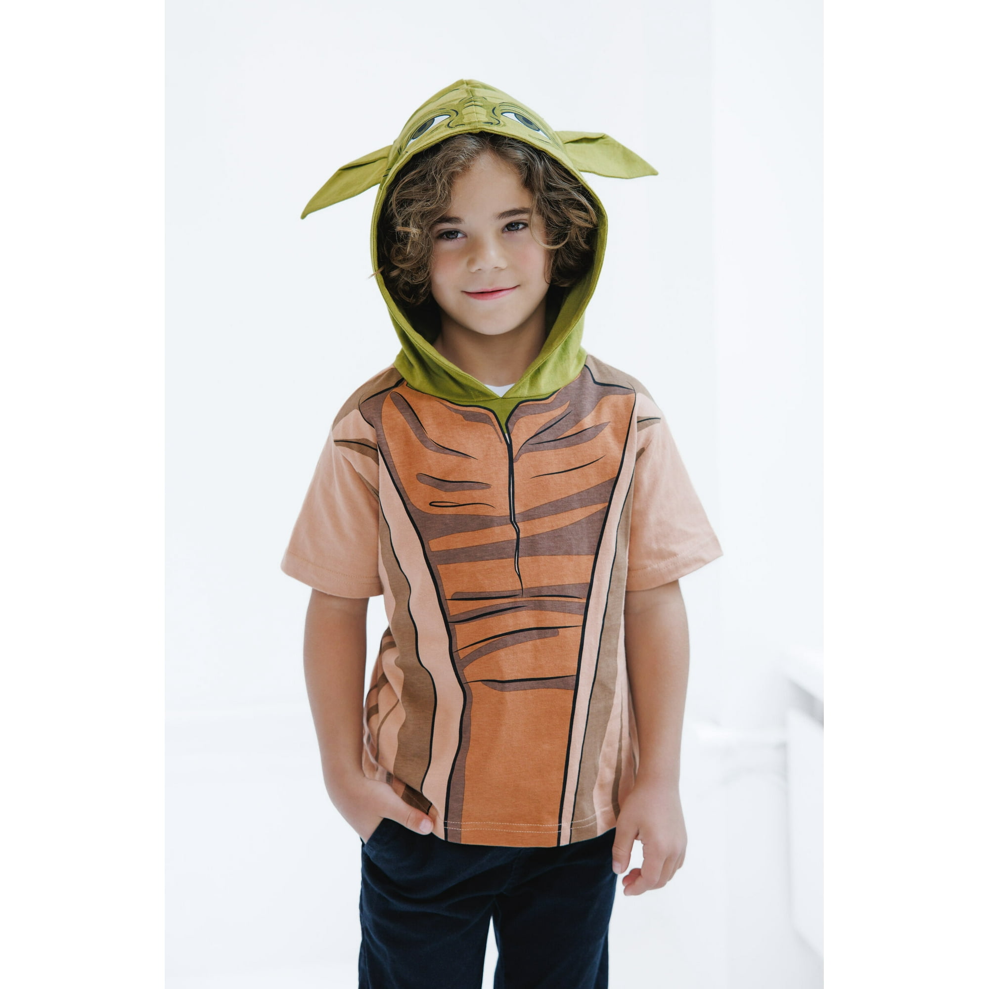 - Official Licensing: Officially licensed STAR WARS Yoda little boys short sleeve graphic tee shirt, featuring a hooded design with dimensional ears.