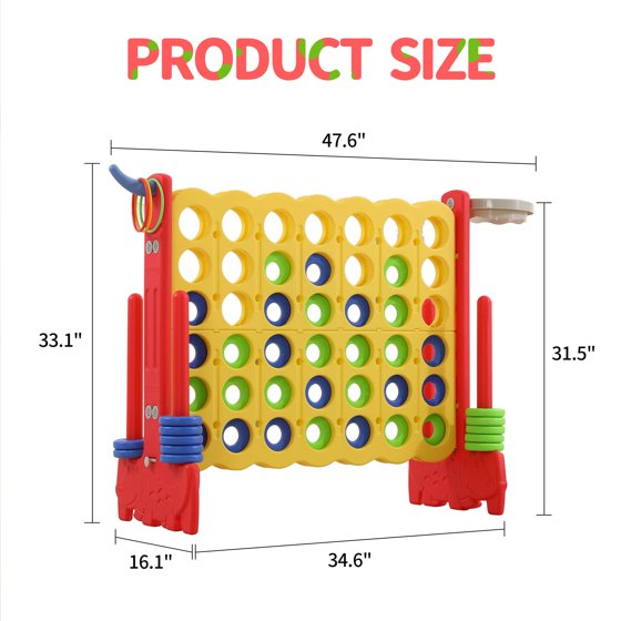 - Multifunctional Entertainment: Our 4 in a row game giant outdoor set is not just an outdoor connect game; it also features a built-in basketball hoop and ring toss. This versatile giant 4-to-Score game provides varied activities, enhancing the fun for all ages.